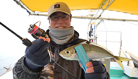 フィッシングアドバイザーは、メジャークラフトの広瀬達樹。夕方に出船する通常のバチコンと違い、デイバチコンは午後から夕方までの釣り。今回は逆ダウンショットの仕掛けで美味しいアジを狙っていきます。