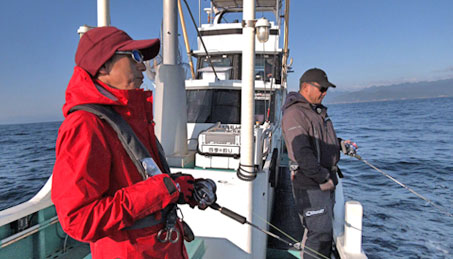 ポイントの水深は300m以上。ボトムは取らずにラインを150m出し、船長の指示ダナでもある100m前後の層を集中して探って行く。竿を出してから6時間経過しても、全くアタリも無い状態が続く。船長も実績があるポイントへ次々と移動するが状況は変わらず。